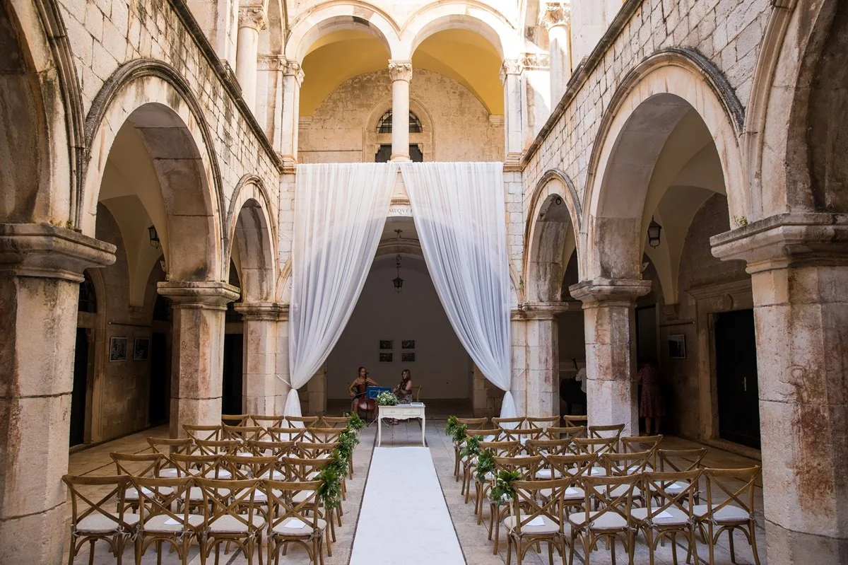 One of the most beautiful palaces in Dubrovnik and an important public monument that dates back to the rise of the Dubrovnik Republic, the 16th century Sponza Palace can host ceremonies and receptions of up to 150 guests. All events of the day take place in their grand courtyard, which once formed a lively shopping promenade and a meeting place for businessmen of the Republic, complete with tall romantic arches and upper terraces.