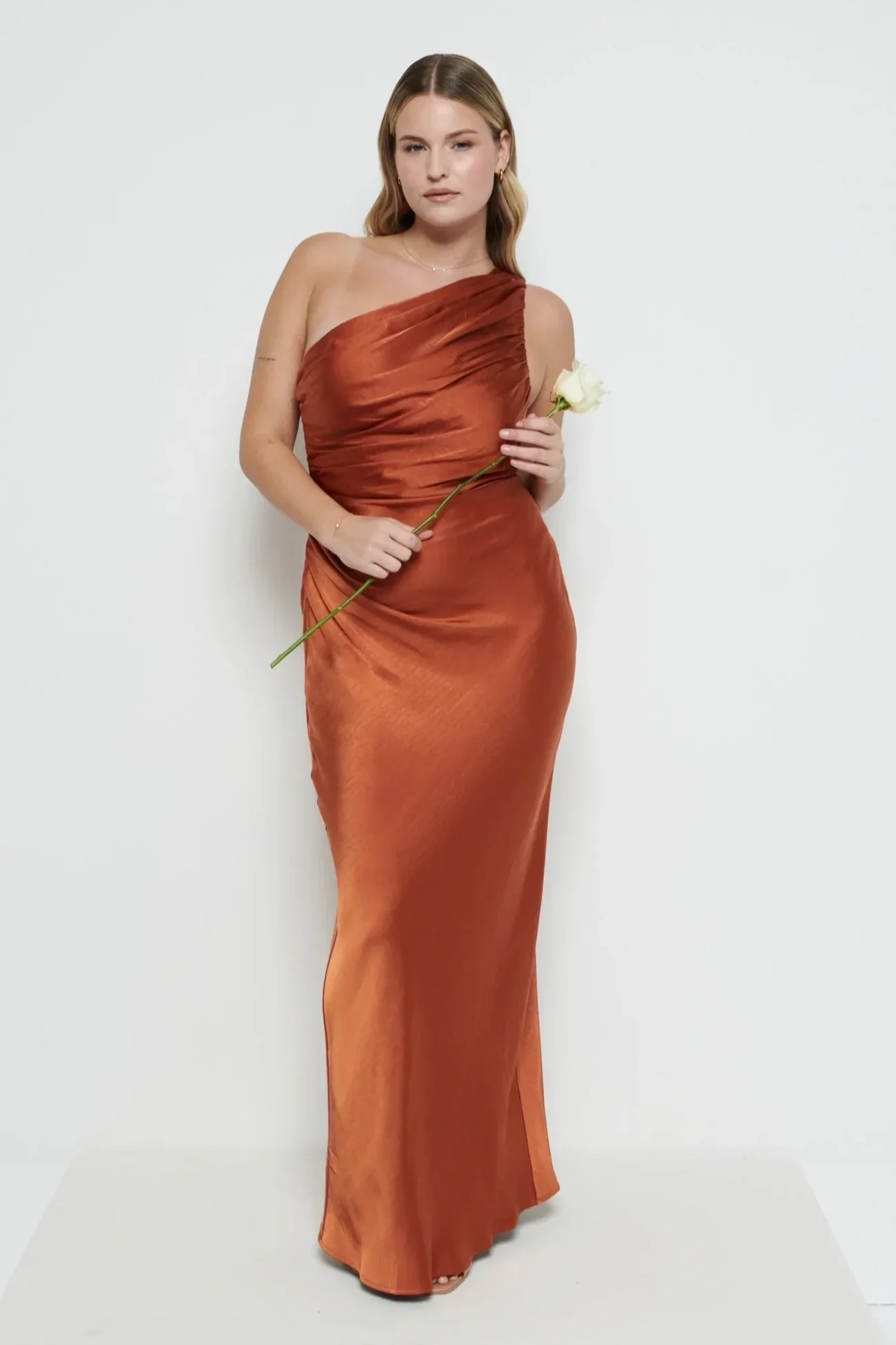 One-shoulder bridesmaid dresses are a chic, modern choice that effortlessly balance elegance and style. The asymmetrical neckline adds visual interest and a touch of sophistication, flattering a range of body shapes while feeling fashion forward without being overpowering. Perfect for both classic and contemporary weddings, one-shoulder designs look beautiful in soft flowing fabrics or structured silhouettes, and they photograph stunningly, especially when styled together in complementary shades for a cohesive bridal party look.