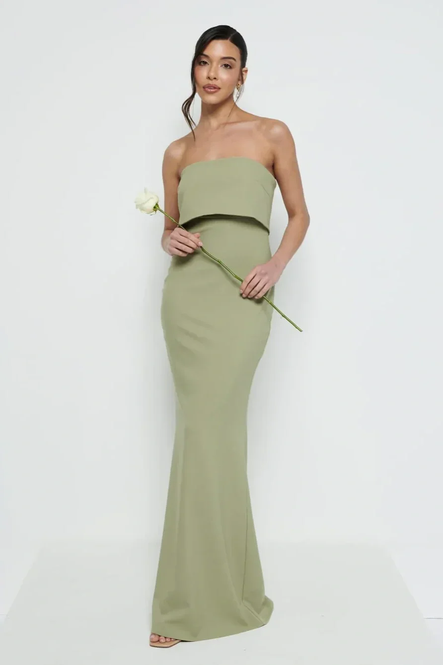 Strapless bridesmaid dresses are a timeless choice that highlight the neckline and shoulders for a clean, elegant silhouette. Loved for their versatility, they work beautifully in both classic and contemporary weddings, especially in structured fabrics that offer a flattering fit. Effortlessly chic and polished, strapless styles allow for easy accessorising and create a cohesive, sophisticated look across the bridal party.