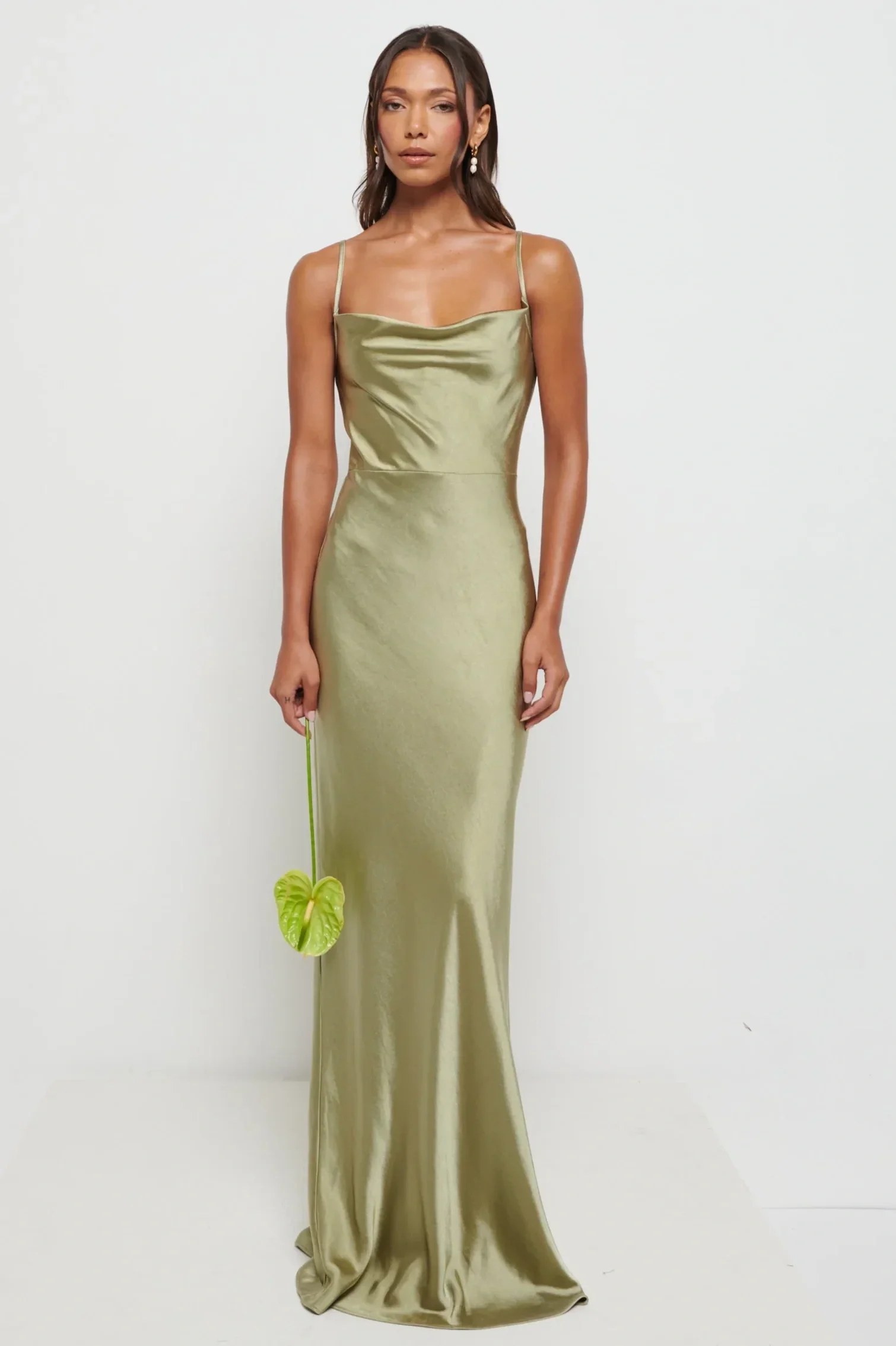 Cowl neck bridesmaid dresses bring a soft, romantic elegance to any bridal party, with their gently draped neckline creating a flattering and feminine silhouette. The fluid folds add movement and a touch of luxury, making this style especially beautiful in satin or silky fabrics. Effortlessly chic and timeless, cowl neck dresses suit both modern and classic weddings, offering a refined look that feels graceful without being overly formal.