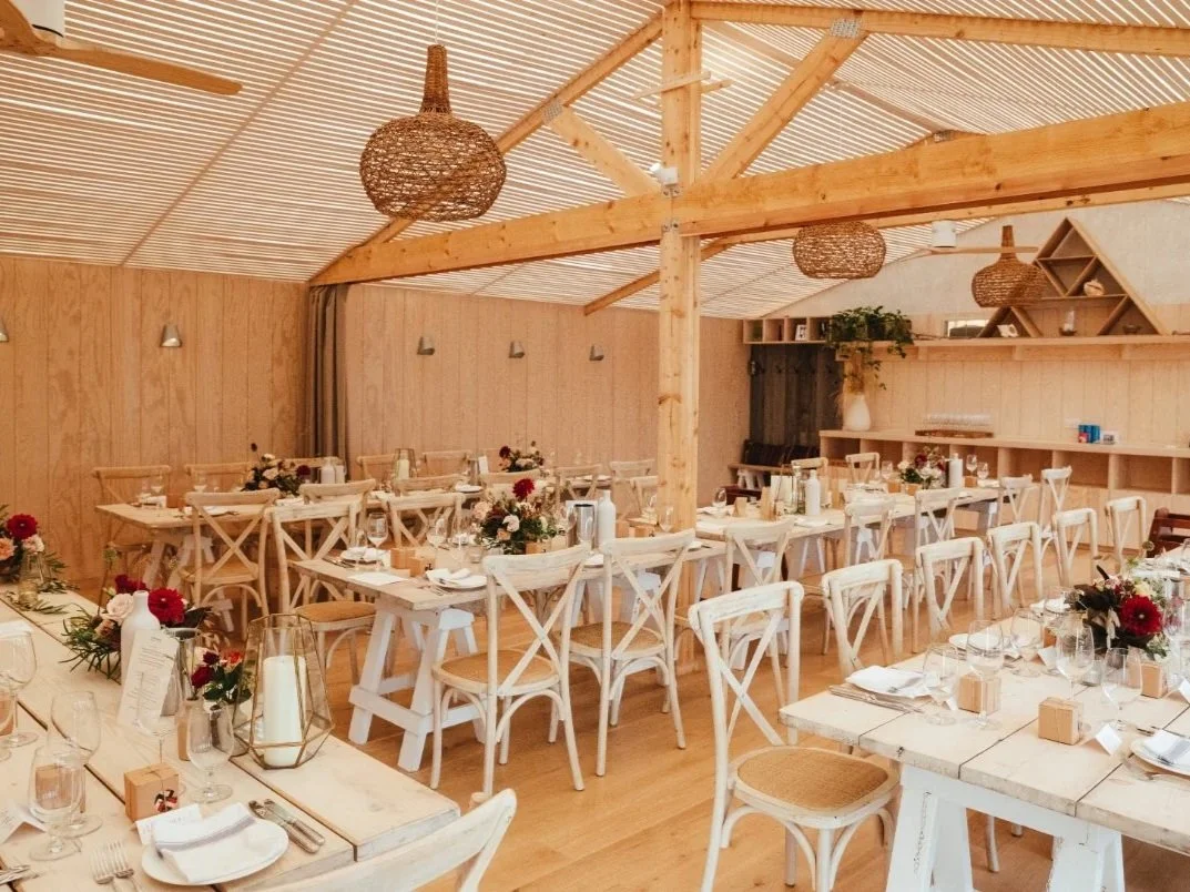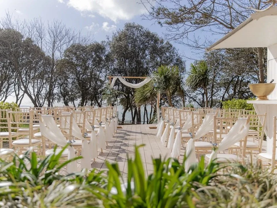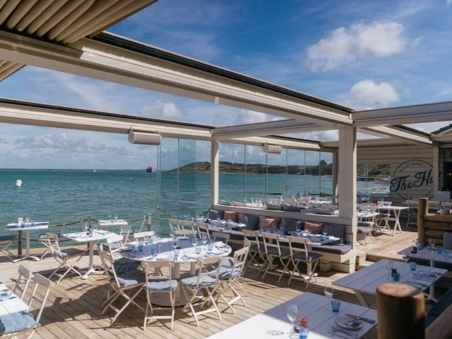 Positioned directly on the waterfront, The Hut Colwell Bay on the Isle of Wight offer a stylish and relaxed beachside setting with panoramic views across the Solent. The venue has a distinctive Mediterranean-inspired atmosphere with whitewashed exteriors, open terraces and retractable glass walls that allow guests to enjoy the sea views in any weather. Couples can celebrate with intimate ceremonies and private dining on spaces such as the Roof Deck or Top Deck, followed by seafood-focused wedding feasts and sunset drinks overlooking the bay. Guests can even arrive in memorable style by boat, anchoring in Colwell Bay before being brought ashore, adding to the venue’s laid-back coastal luxury and destination-style wedding experience.