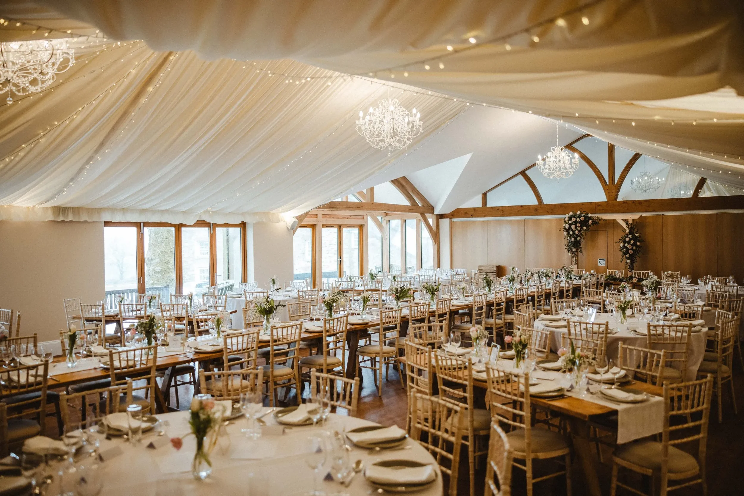 A beautifully restored Georgian manor set within peaceful gardens and parkland with views stretching towards the sea, Tredudwell Manor in Fowey offers an elegant coastal country-house setting just moments from the South Cornwall coastline. Couples can exchange vows in the light-filled outdoor pavilion or within the manor house itself before celebrating with drinks on the terrace and a reception in the spacious event barn. With exclusive use of the estate, accommodation for guests and the flexibility to host both intimate celebrations and larger gatherings, Tredudwell Manor provides a refined yet relaxed coastal setting.
